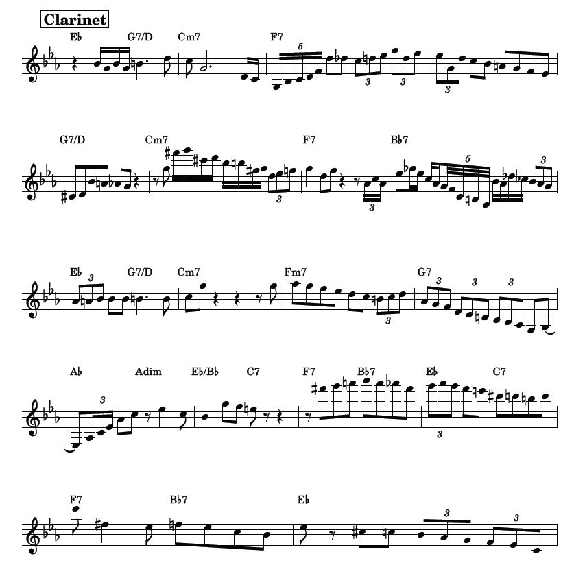 ただ、このクラリネットのソロは聴いていて、なんともイキで心地よいので採譜をしてみた。